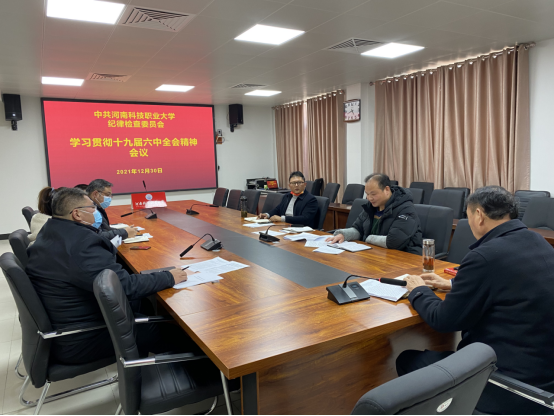 为深入学习贯彻党的十九届六中全会精神,引导学校纪检监察干部切实把思想和行动统一到全会精神上来,根据全校关于学习贯彻党的十九届六中全会精神宣讲工作的统一部署,12月30日,中共河南科技职业大学纪律检查委员会就党的十九届六中全会精神开展集体学习,会议由校纪委书记凌现庄同志主持,校纪委委员集体学习了《中国共产党第十九届中央委员会第六次全体会议公报》,并开展研讨交流。