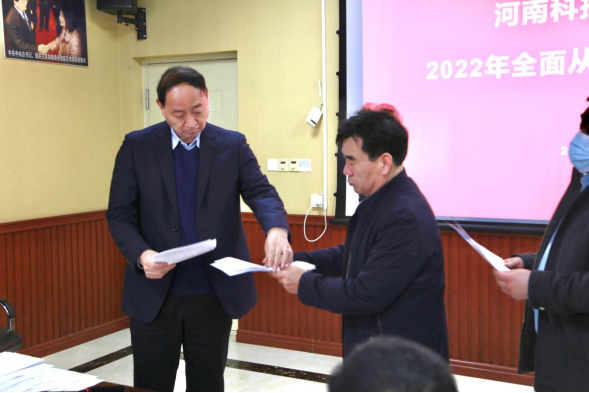 会议共三项议程,一是由校纪委书记凌现庄对2022年学校党风廉政建设具体任务进行部署;二是进行廉政责任书递交仪式;三是由校党委书记王剑作重要讲话。
