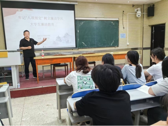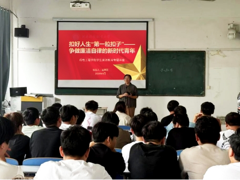 建筑工程学院以“筑廉洁之基,建人生高楼”为主题,以“建筑安全”喻“人生廉洁”,王舜书记强调作为建筑学子,要以廉洁为‘地基’、诚信为‘钢筋’、担当为‘混凝土’,在建造实体高楼的同时,更要筑起无愧时代的精神大厦!”;信息工程学院聚焦数字化时代,网络空间中的信息安全与网络伦理,重点分析大学生网络造谣、黑客攻击、技术手段谋取私利等违法案例,引导学生牢固树立廉洁底线;经济与管理学院深入解析了学生在学术诚信、学生工作、人际交往、未来职场等存在的廉洁风险点和微腐败具体表现,并倡导警钟长鸣、修身笃行以坚守内心的廉洁底线;美术与艺术设计学院以“中央八项规定”为核心授课内容,引导学生深刻领会中央八项规定精神实质,将廉洁自律、务实作风融入学习与工作之中。